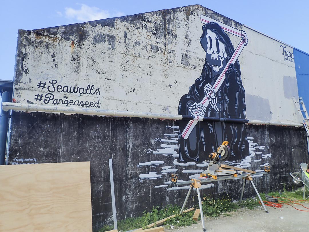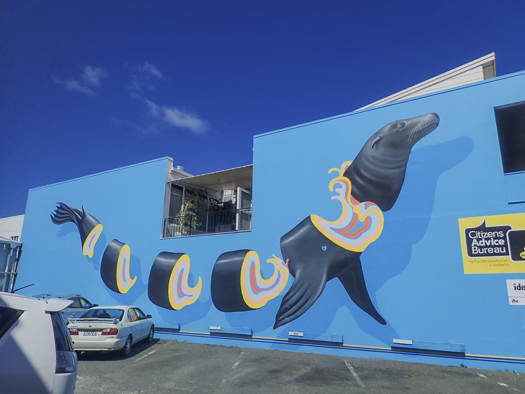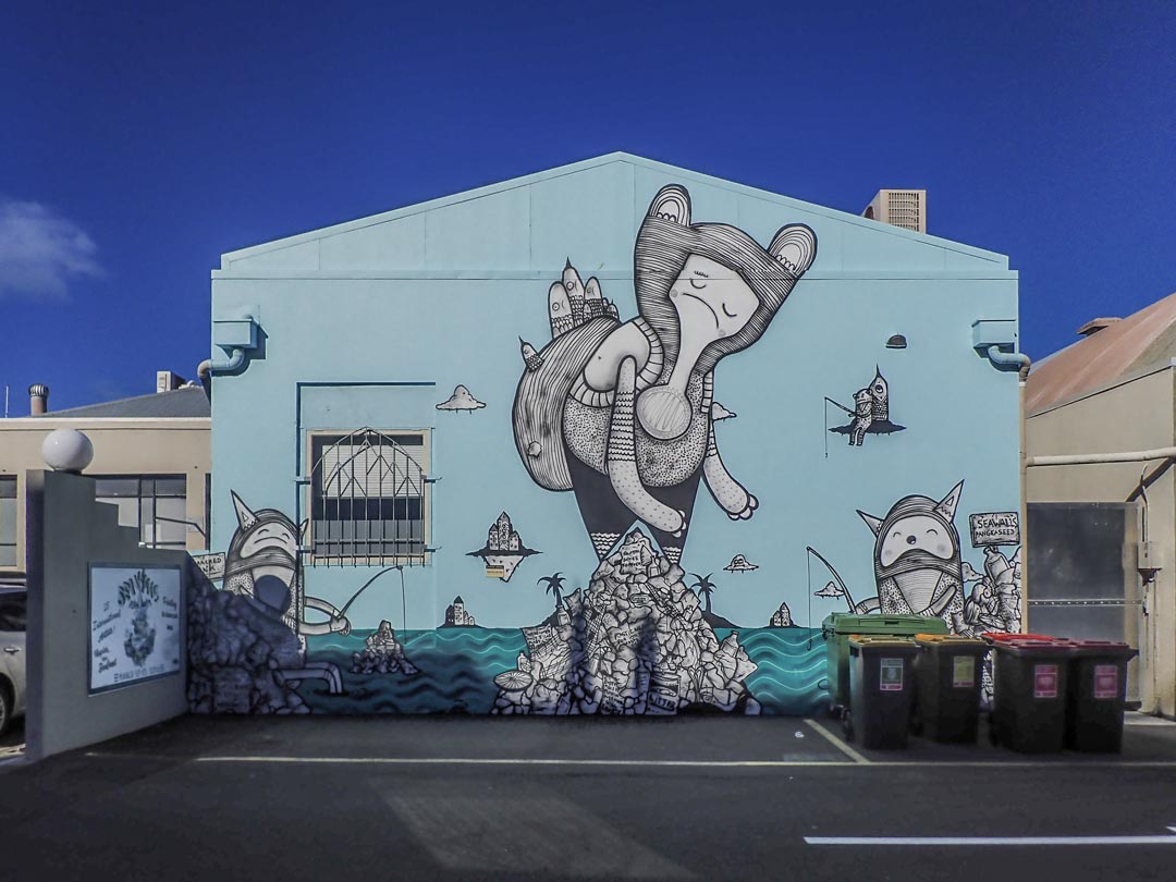 Le street-art en Nouvelle-Zélande s’exprime à travers de nombreux festivals : Graffiato à Taupo, Street Prints à Whangarei, Boon Street Art à Hamilton, Get Up à New Plymouth, South Sea Spray à Riverton, PARADOX à Tauranga, RISE à Christchurch, etc. Mais celui qui résonne certainement le plus avec l’environnement néo-zélandais est le festival « Sea Walls : Artists for Oceans ».